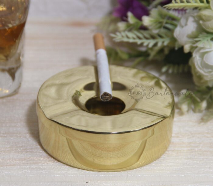 Home BAR Ash Tray Pure Brass Round Ashtray – Glossy Finish